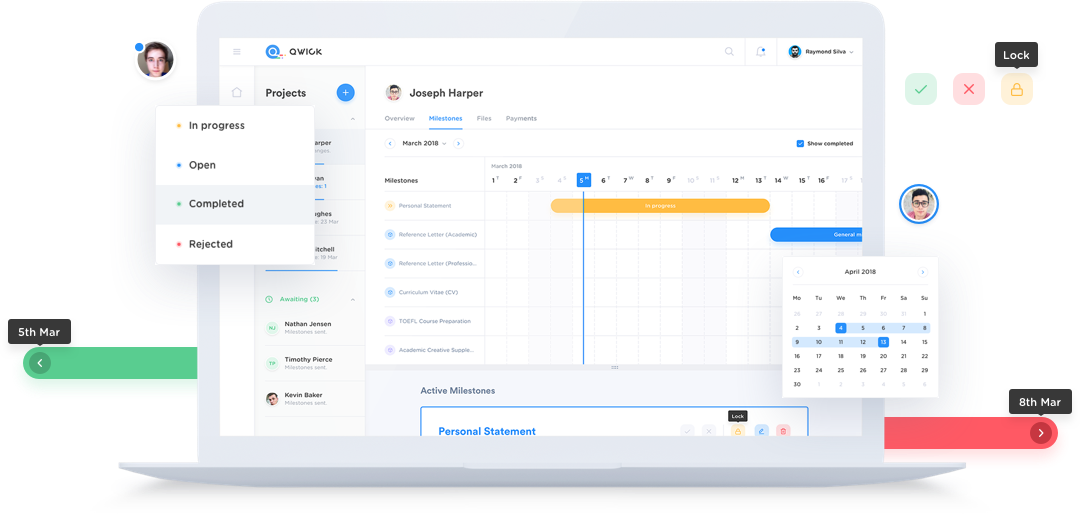 Qwick platform’s features enable you to share work files between members of the team, allow for integration with calendar to set the deadlines and keep track of what needs to be done.